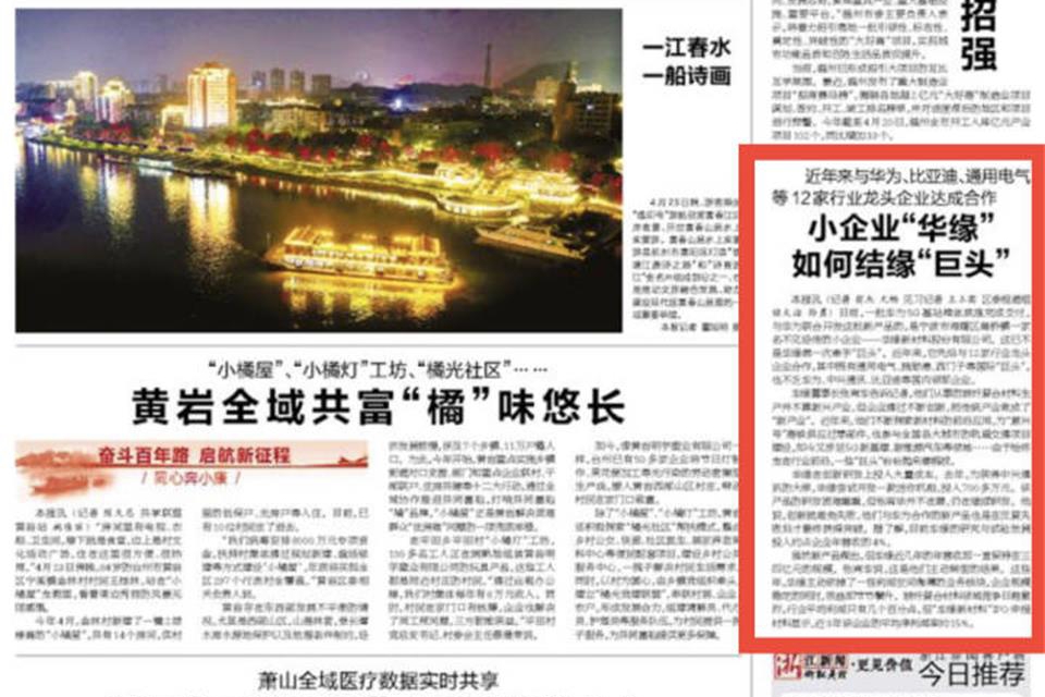 浙报头版|与华为、比亚迪等12家行业龙头企业达成合作 宁波这家小企业如何结缘“巨头”
